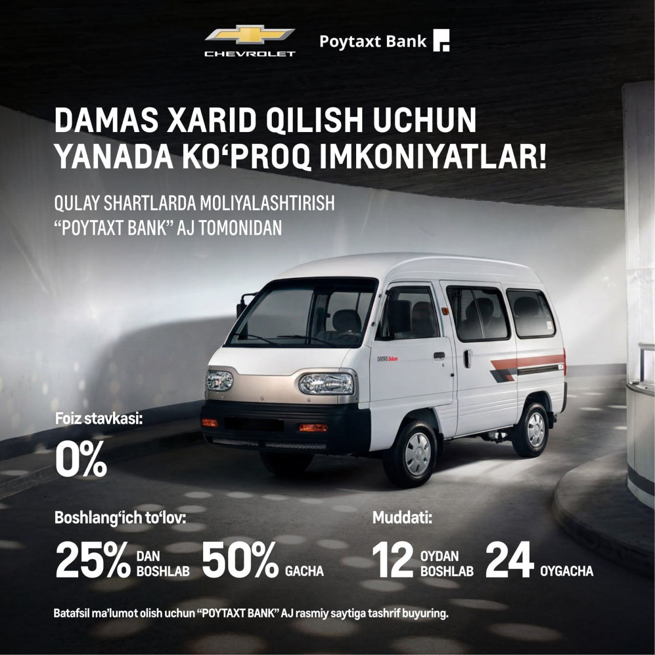 Moliyalashtirish shartlari “POYTAXT BANK” AJ tomonidan belgilanadi.