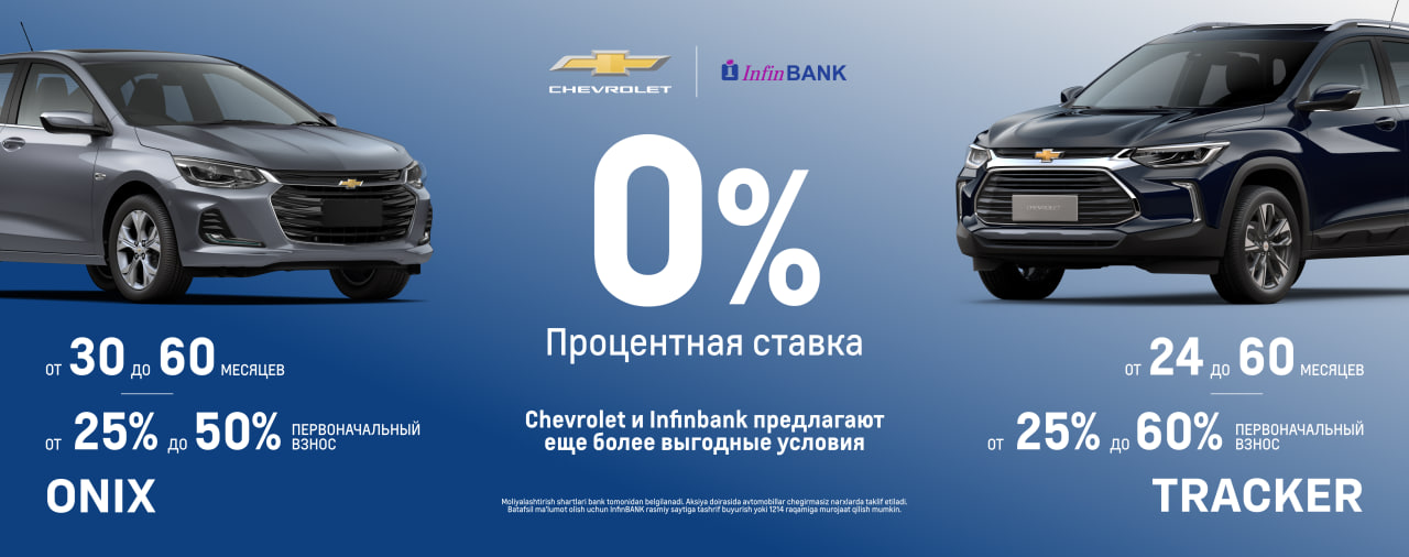 АО «UzAuto Motors» совместно с коммерческими банками продолжает расширять возможности для клиентов по приобретению автомобилей Chevrolet Onix и Tracker с нулевой процентной ставкой.