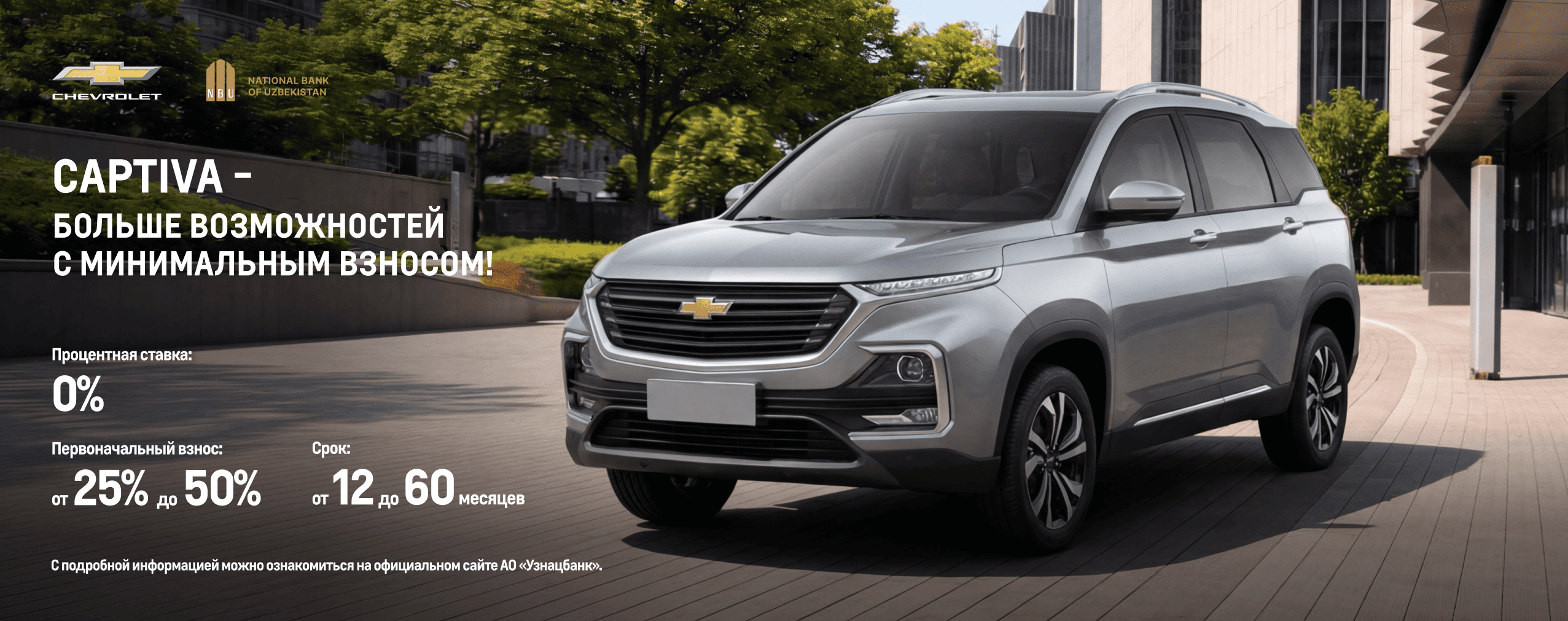 Воспользуйтесь новыми возможностями! АО «UzAuto Motors» совместно с АО «Узнацбанк» предоставляет возможность приобрести автомобиль с минимальным первоначальным взносом и ставкой от 0 %.