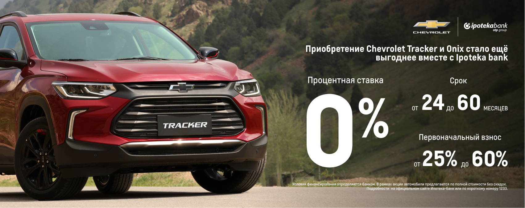 Кроме того, автомобили Chevrolet Tracker и Onix можно приобрести по льготным условиям с процентной ставкой 0% также через банки Kapitalbank, Infinbank, Tengebank и Asakabank.