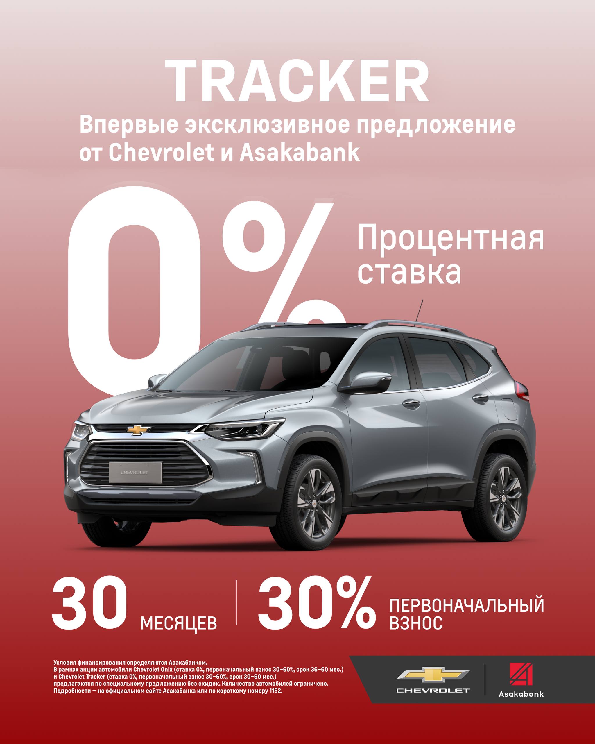 Автомобили Chevrolet Onix и Tracker можно приобрести с годовой ставкой 0% в рассрочку сроком до 60 месяцев.