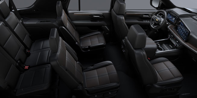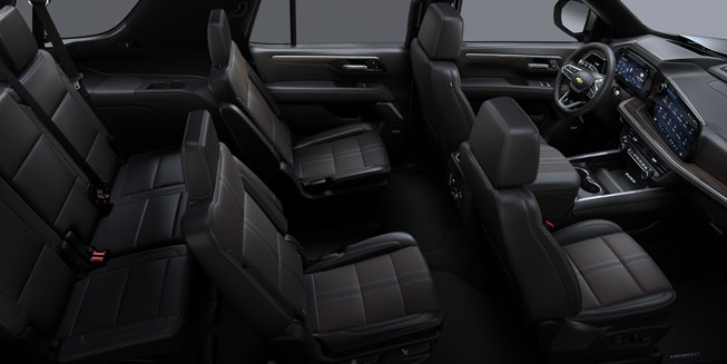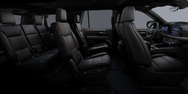 Bu yangilangan, sokin va nafis salon, hatto voqealar qoq markazida bo‘lsangiz ham, barcha ishlardan chalg‘ishingizga yordam beradi. Yuklarni saqlash va tashish uchun ko‘plab yechimlar o‘ylangan. Yangi Tahoe uch qatorli yo‘ltanlamas bo‘lib, unda har qanday safarlar uchun yetarlicha joy mavjud.
