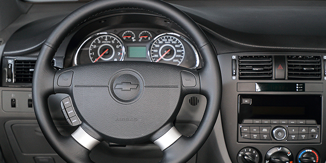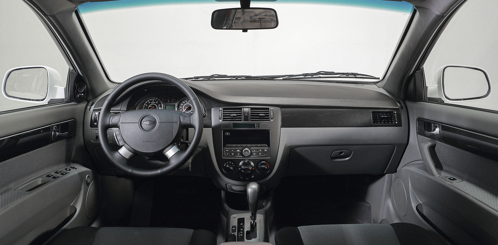 Интерьер Chevrolet Lacetti отличается простотой и элегантностью. Качественные материалы отделки, выдержанные в единой цветовой гамме создают атмосферу уюта и визуально расширяют пространство салона. Аккуратная панель со всеми необходимыми элементами управления, удобный руль, обитый кожей, подсвеченный бардачок, кондиционер, спидометр, выполненный в оригинальном стиле – это лишь малая часть отличной комплектации машины.